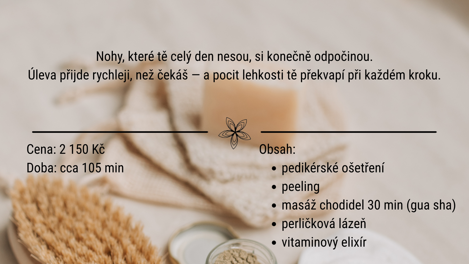 Každý krok na sebe navazuje tak, aby nohy nejen vypadaly dobře, ale hlavně se tak cítily. Výsledek? Hebkost, uvolnění a pocit, že je o tebe opravdu postaráno.