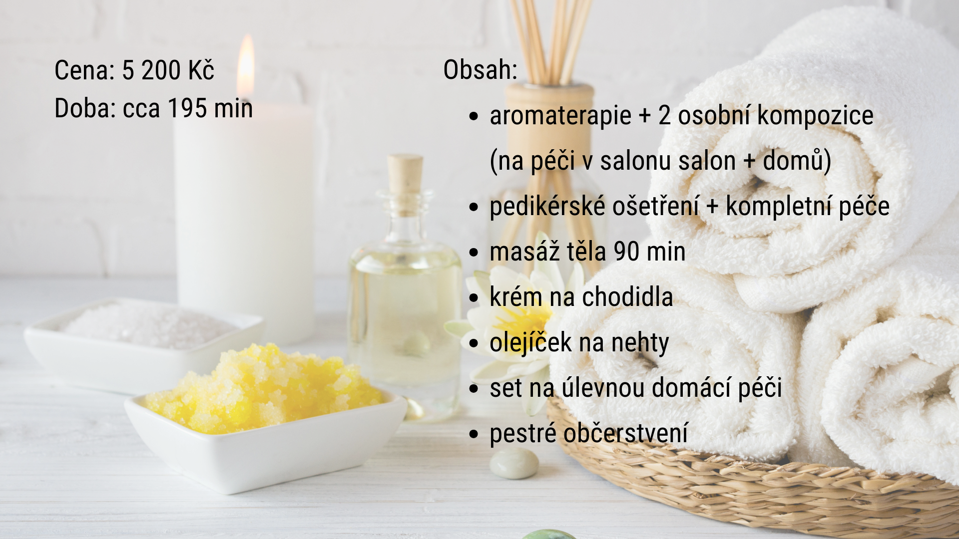 Masáž uvolní napětí, aromaterapie zklidní hlavu a ty se vrátíš sama k sobě — bez hluku, bez tlaku, bez výkonu.